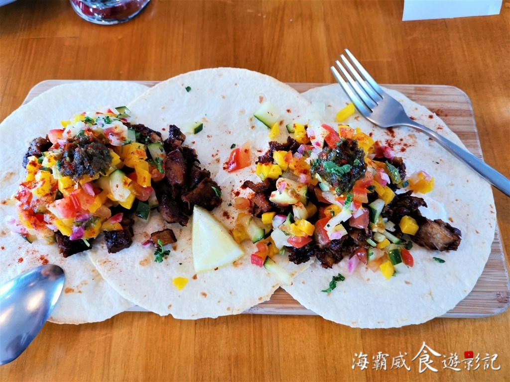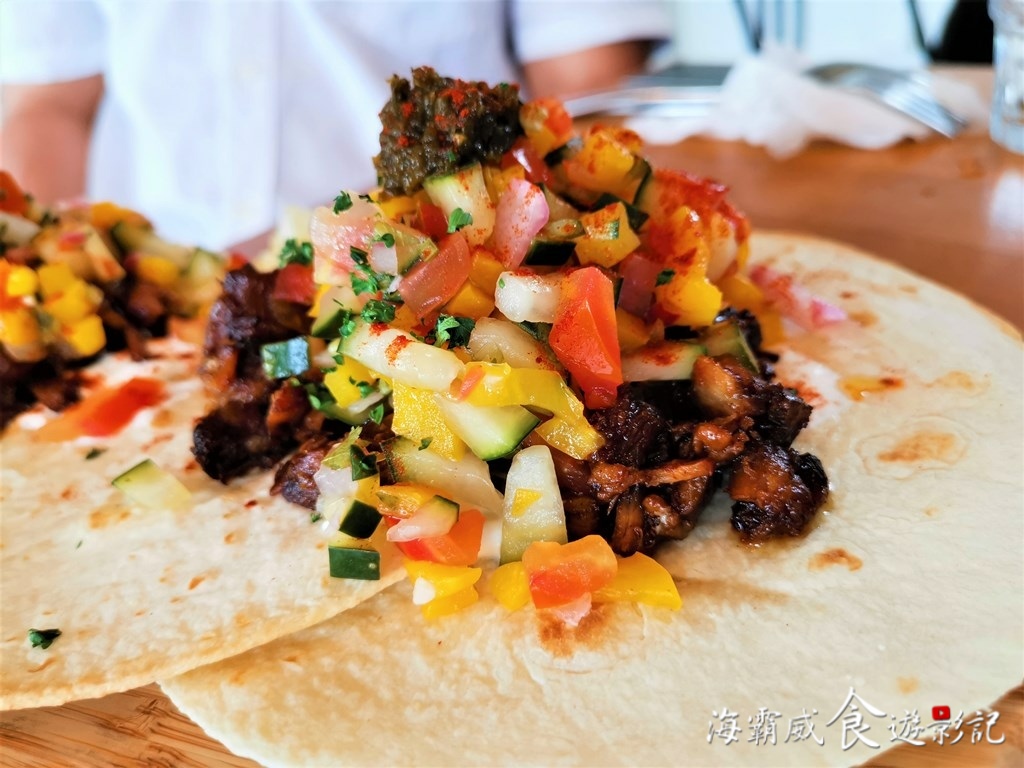 豬肉墨西哥小捲餅 280元/份 帶點嚼勁的餅皮,各式的彩椒/蔬菜與豬肉丁,份量十足.