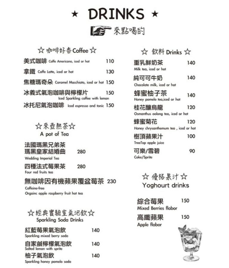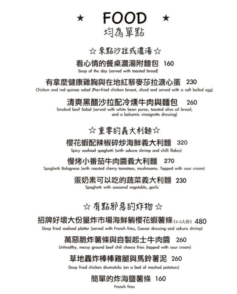 *餐廳低消:每人須點一份飲料或一份餐點都可以(人頭計費)