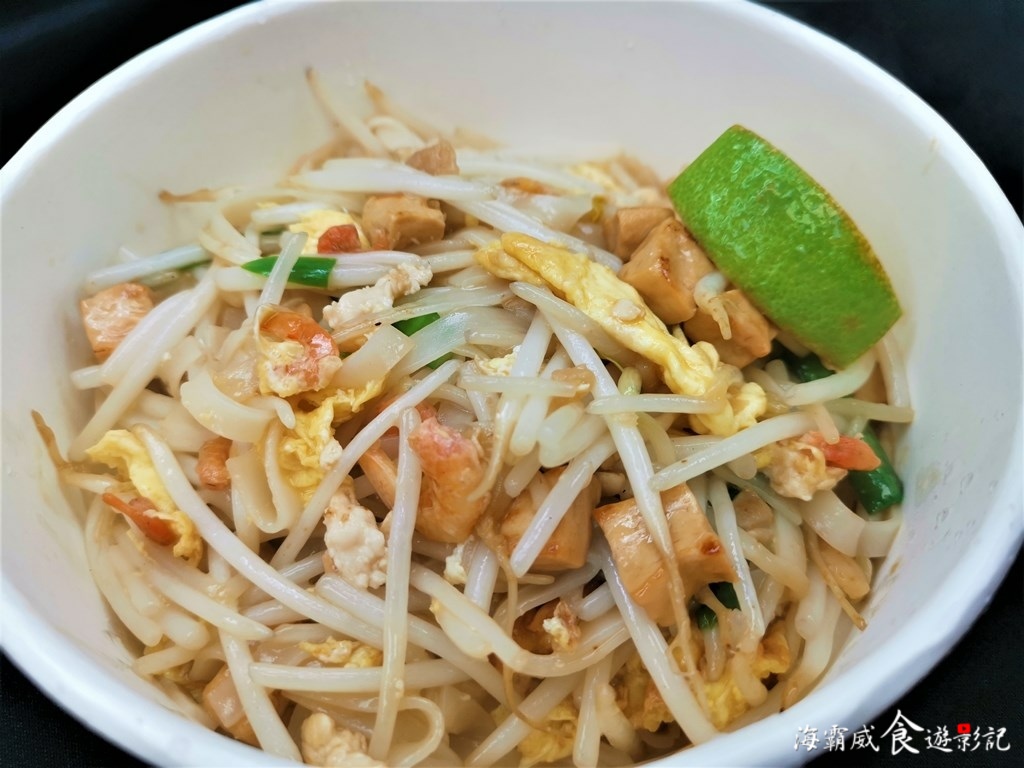 來自泰國的河粉配料很澎派,能吃到雞肉末、蝦米、豆干、銀芽還有韭菜,建議吃的時候可加入花生碎與辣椒,拌著一起吃,味道會更豐富,至於要不要加砂糖,由於個人沒有很愛,大家可以試試看.